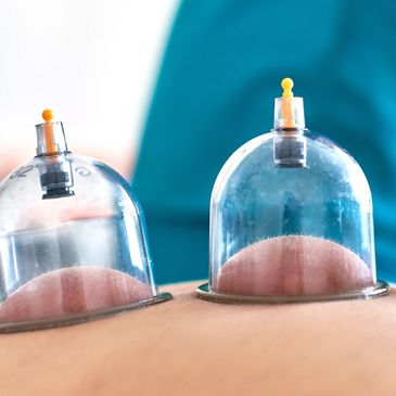 Cupping uses suction on the skin to facilitate deep muscle healing and significantly increase blood flow. An oil massage is performed, and the cups can either move or stay static, bringing stagnant blood to the surface where the body can process it. Cupping can leave marks for a few days and can performed on the skin only. Clients with bu
